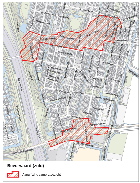 Kaart 8.3: detailkaarten CBS-buurt Beverwaard behorende bij de overzichtskaart van cameratoezichtgebied IJsselmonde