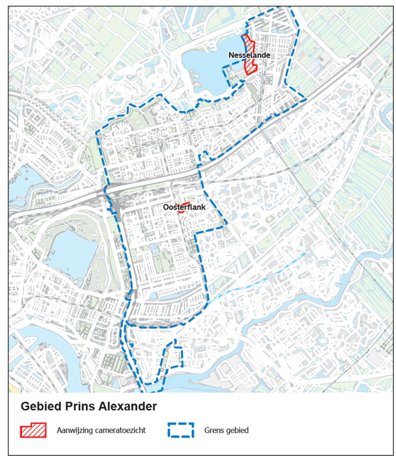 In het gebied Prins Alexander zijn twee camerawijken: Oosterflank en Nesselande. Het gebied beschikt over een strand, horecagelegenheden, woongebieden, plekken voor recreatie en vrijetijdsbesteding en onderwijsinstellingen en is goed bereikbaar door de vele openbaar vervoer verbindingen. Aan al deze factoren zijn verschillende openbare orde- en veiligheidsproblemen gerelateerd. Jeugdproblematiek, overlast van personen met onbegrepen gedrag en door alcohol of drugs, diefstal en geweld in de vorm van straatroven en mishandelingen zijn belangrijke thema’s in dit gebied. Voor de zomermaanden is voor het strand het Warm Weer Protocol van kracht, waarin inzetafspraken door alle veiligheidspartners zijn gemaakt.
