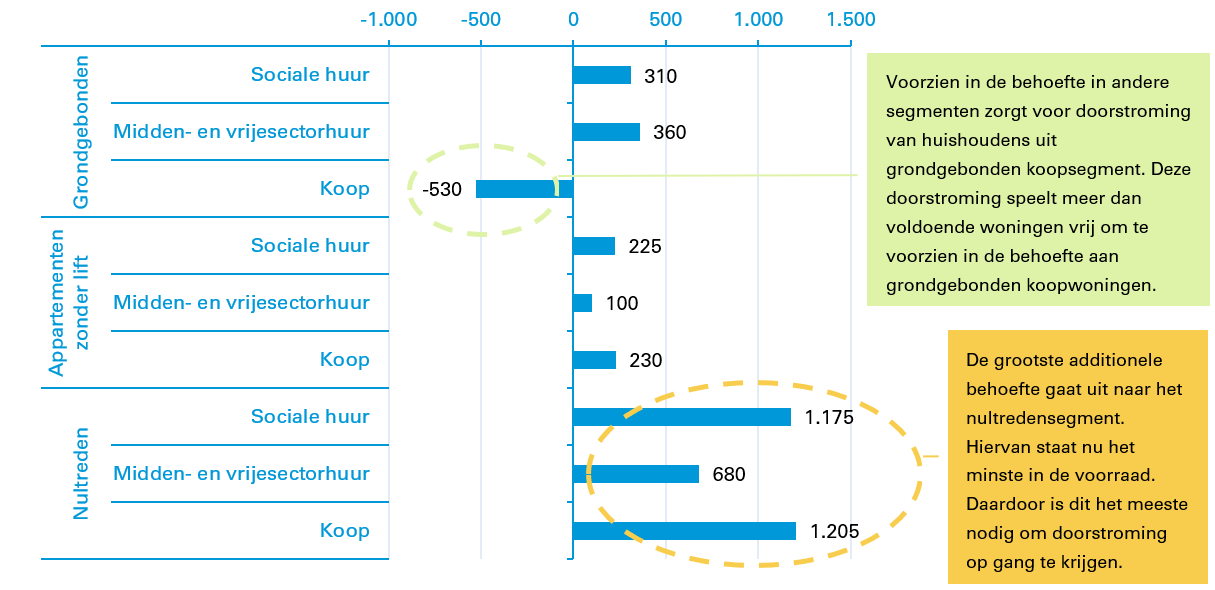 Ook de behoefte aan nultredenwoningen groeit vanwege de vergrijzing,