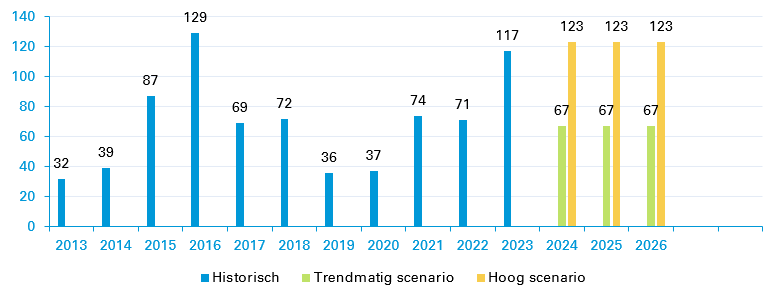 Figuur 7: Historische en verwachte toekomstige huisvestingsopgave statushouders