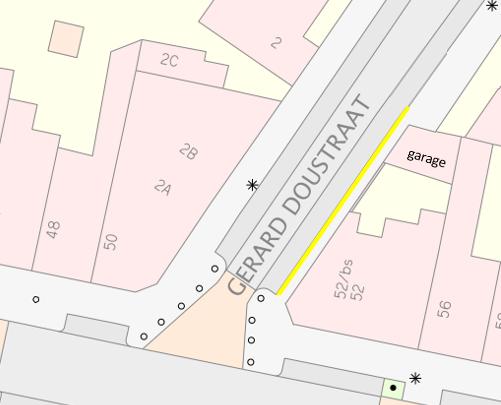 Gerard Doustraat (ter hoogte van de zijkant van perceel Vossegatselaan 52; wegvak tussen Vossegatselaan en Frans Halsstraat)