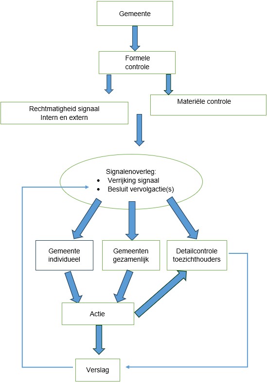 Deze pakken hun onafhankelijke rol van toezichthouder op en prioriteren signalen die zij ontvangen. De regie ligt vanaf dit moment bij de toezichthouder en deze informeert de gemeente over de vervolgstappen.