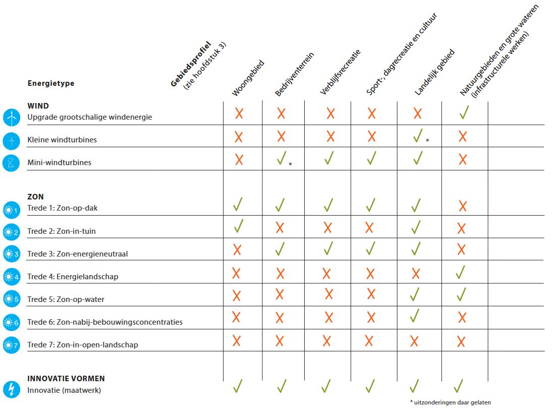 De opties voor duurzame energie worden per deelgebied geduid in de volgende alinea’s.