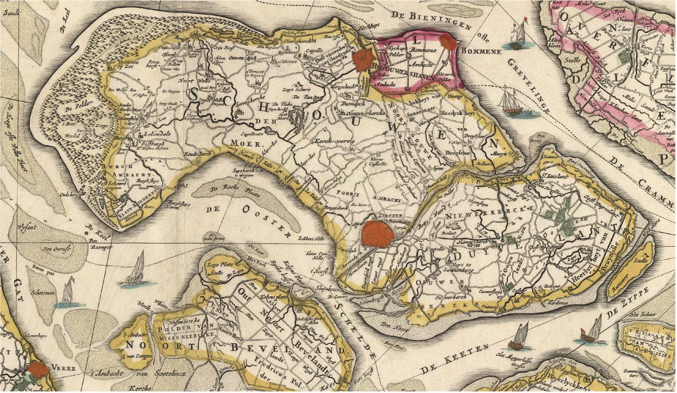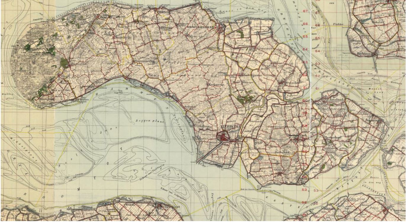 Het landschap van Zeeland is het resultaat van de combinatie van omvangrijke natuurlijke gebeurtenissen en het ingrijpen van de mens. Eeuwenlang bouwden de bewoners van Schouwen- Duiveland aan hun eiland. Het was een voortdurende interactie met de zee. Naast doorbraken en afkalvingen vonden ook aanslibbing, landaanwinning en zandinblazing plaats. Tussen 1000 en 1300 werd vanuit de zee veel zand aangevoerd en ontstond het duingebied ‘De Kop van Schouwen’. Dit is het breedste duingebied van Zeeland, met duinen tot 35 meter hoog. De dynamiek waarmee dit gebied gevormd is, is nog steeds goed af te lezen uit de verschillende verschijningsvormen van duinen in het gebied. De stormvloed van 1134 was directe aanleiding om Schouwen te gaan bedijken. In diezelfde periode kregen ook de eilanden Dreischor, Bommenede en Duiveland ringdijken. In de dertiende eeuw vormden Dreischor en Sirjansland samen één eiland. Door een dijkdoorbraak werd Sirjansland gescheiden van Dreischor. Hierbij ontstond de geul het Dijkwater. In 1374 werd het noordelijke deel van de Gouwe afgedamd. De Noordgouwe polder ontstond en het eiland van Dreischor werd verbonden met Schouwen. Er volgde een reeks nieuwlandpolders die een minder roerige geschiedenis kennen dan vele andere delen van het eiland. In 1610 werden de eilanden Schouwen en Duiveland aan elkaar verbonden. Van de stormvloeden, die het gebied troffen, was die van 1953 het meest aangrijpend. Afgezien van de duinen en het gebied tussen Schouwen en Duiveland werd het eiland door zeewater overspoeld.