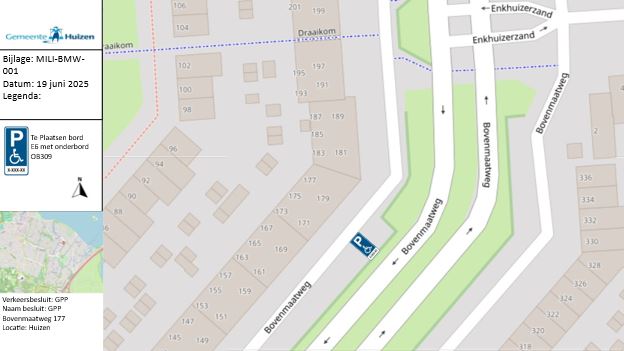 Verkeersbesluit plaatsing gehandicaptenparkeerplaats Bovenmaatweg 177 te Huizen