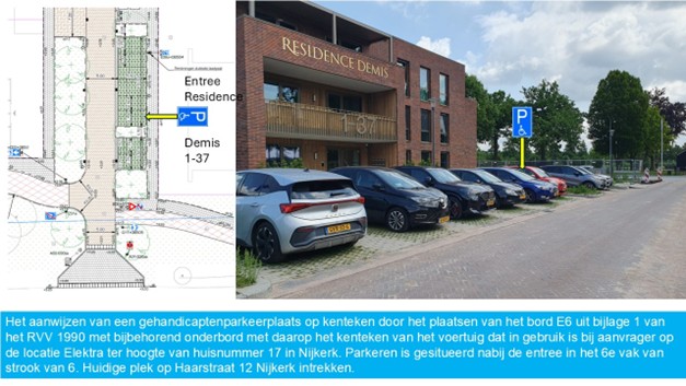 Verkeersbesluit aanwijzen gehandicaptenparkeerplaats op kenteken Elektra 17 in Nijkerk