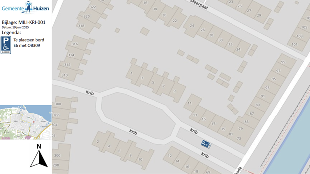 Verkeersbesluit plaatsen gehandicaptenparkeerplaats Krib 17 te Huizen