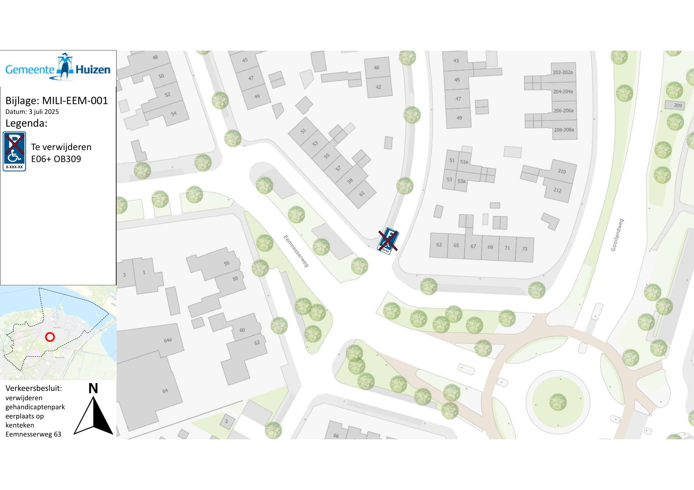 Verkeersbesluit GPP verwijderen Eemnesserweg 63 te Huizen