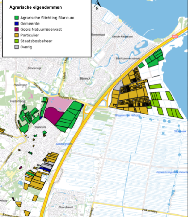Het behoud van het beleefbare en tastbare agrarische karakter, met name in de dorpskern, vereist nauwe samenwerking met grondeigenaren en terrein beherende organisaties (TBO's), zoals bijvoorbeeld de Agrarische Stichting Blaricum, Goois Natuurreservaat en Staatsbosbeheer. De gemeente kan dit behoud enkel via publiekrechtelijke instrumenten realiseren, zoals het Omgevingsplan, verordeningen en omgevingsvergunningen. Deze bieden de juridische basis voor het vastleggen van het gewenste gebruik van grond en het beschermen van het agrarisch karakter.