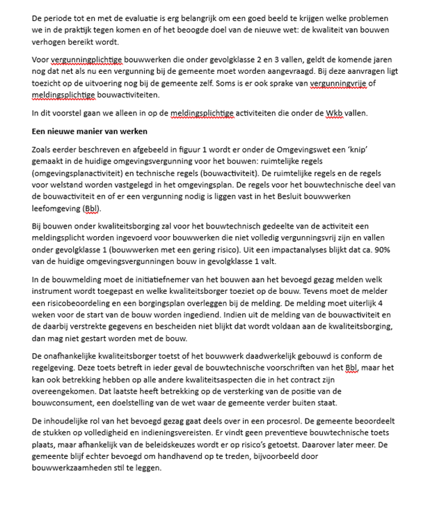 Ook de Wet Kwaliteitsborging voor het bouwen (hierna: Wkb) is op 1 januari 2024 ingevoerd. Met de invoer van de Wkb verschuift de focus in de bouw van het vooraf verkrijgen van een vergunning naar het tijdens en achteraf kunnen aantonen dat wordt voldaan aan de bouwtechnische eisen en andere afgesproken kwaliteitseisen voor gevolgklasse 1 bouwwerken. Hier moet vooraf wel eerst een omgevingsvergunning voor worden aangevraagd om te controleren of het aan het ruimtelijke aan het omgevingsplan voldoet en waar van toepassing aan o.a. Welstand. De gemeente dient te controleren of het instrument voor