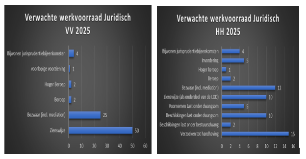 De grootste uitdagingen zaten in het managen van de grote verloop, ziekte en krapte op de arbeidsmarkt voor beide teams om zo de werkvoorraad voldoende beheersbaar te houden. Om de risico’s zoveel mogelijk te beperken is in 2024 gebruik gemaakt van o.a. inhuur en het uitbesteden van taken en dossiers en zijn vacatures opgesteld en ingevuld.