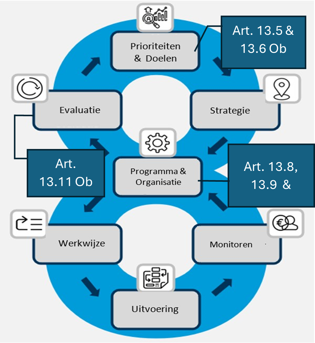 De procescriteria beschrijven de eisen die gesteld worden aan de beleidscyclus. Door de stappen in de procescriteria te volgen wordt de cyclus gesloten. Daarbij is de ‘BIG-8’ gehanteerd. Onderstaand figuur geeft in 7 processtappen de beleidscyclus ‘BIG-8’ weer.