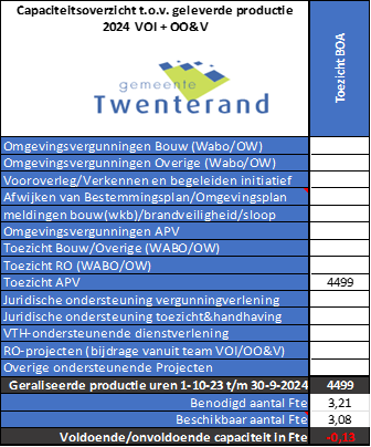 Om de voorgenomen werkvoorraad te realiseren, is 4,0 fte nodig. Er is 4,0 fte aan capaciteit beschikbaar.