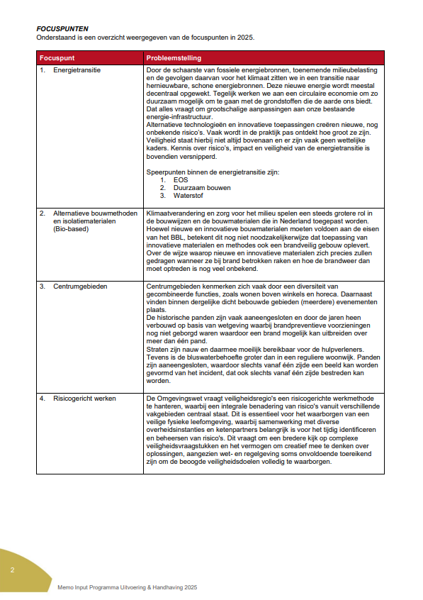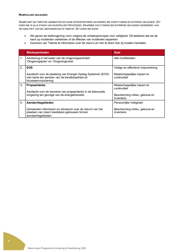 Voor 2025 staan er in totaal 28 te controleren objecten volgens de meegezonden objectenlijst op het programma. De Brandweer Twente maakt haar planning voor het volgende jaar inzichtelijk in een separaat Uitvoeringsprogramma. Dat is te vinden in bijlage 2 van dit UP. Wij volgen de tekst en uitleg die de Brandweer daarbij geeft en zien geen noodzaak extra aanvullingen hierop te doen.