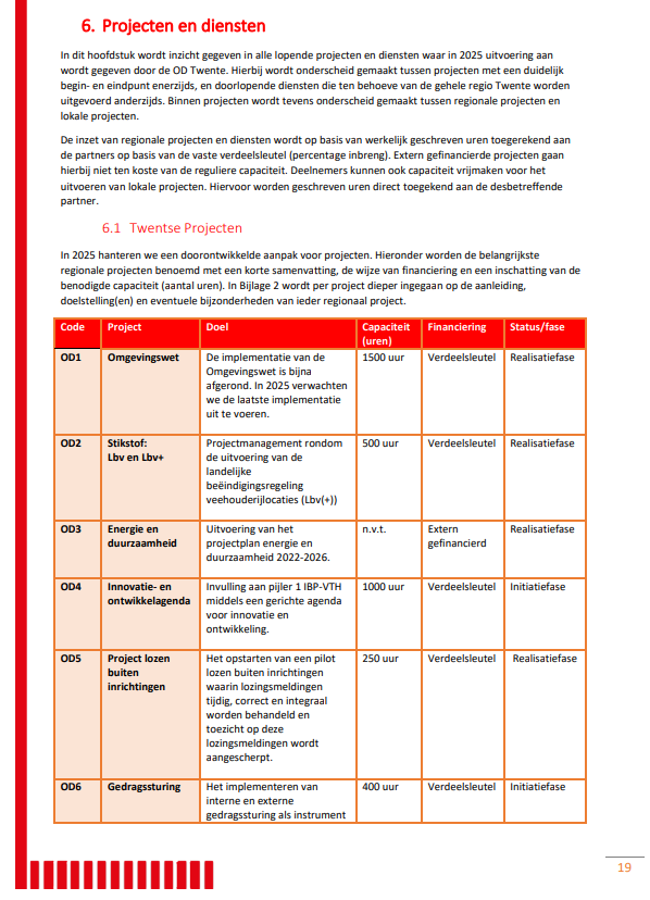 Prognose Milieu taken belegd bij de ODT Adviezen en Projecten 2025