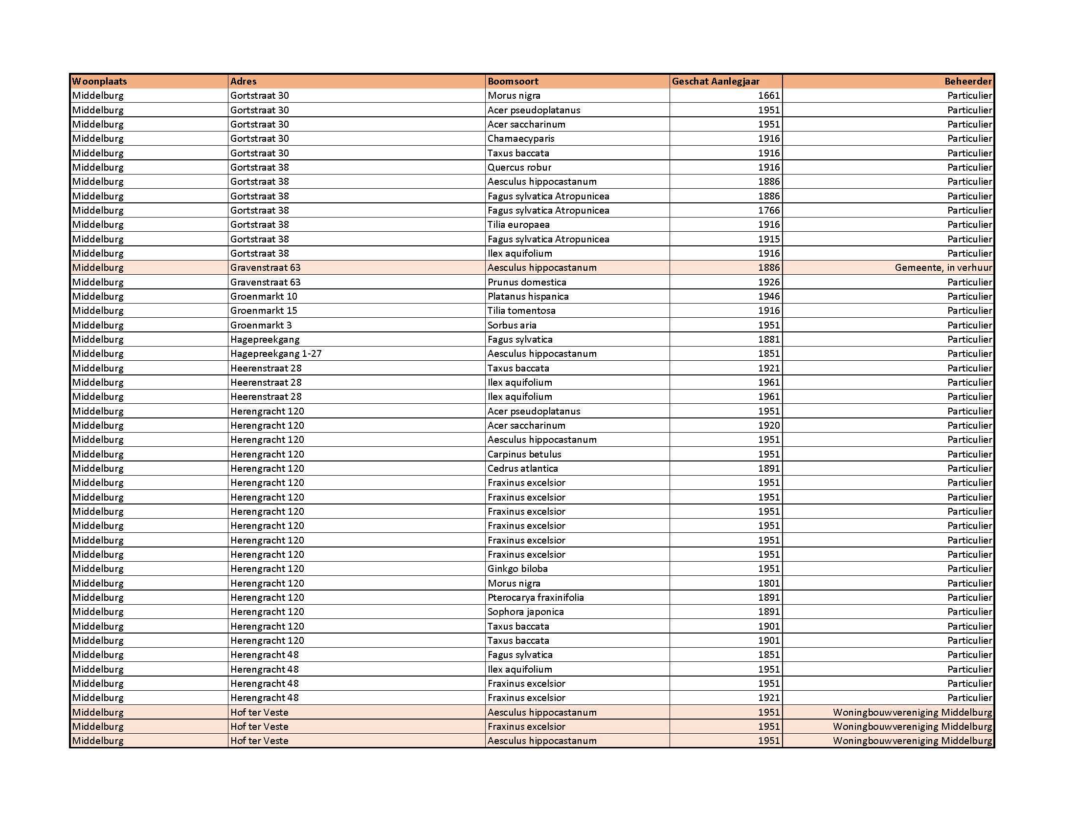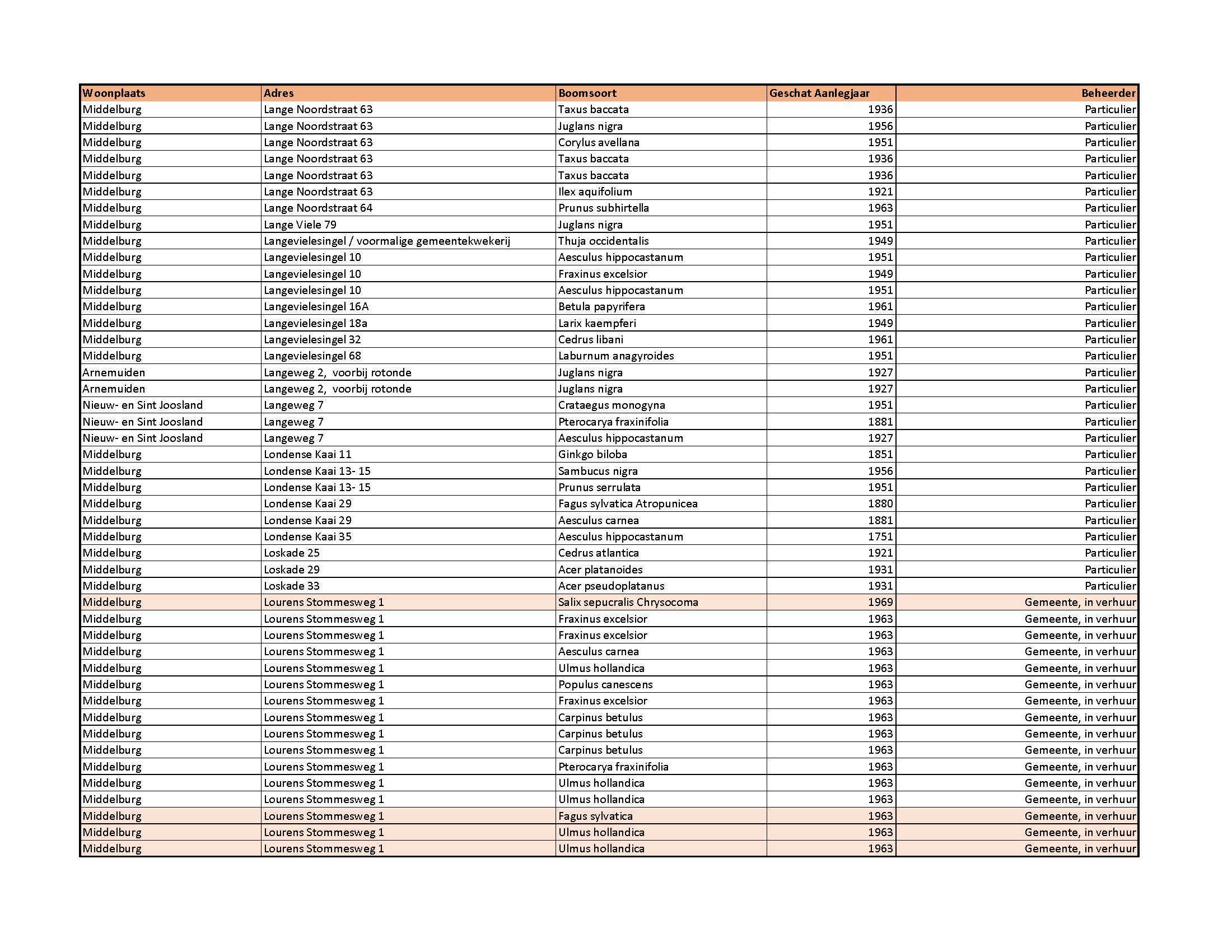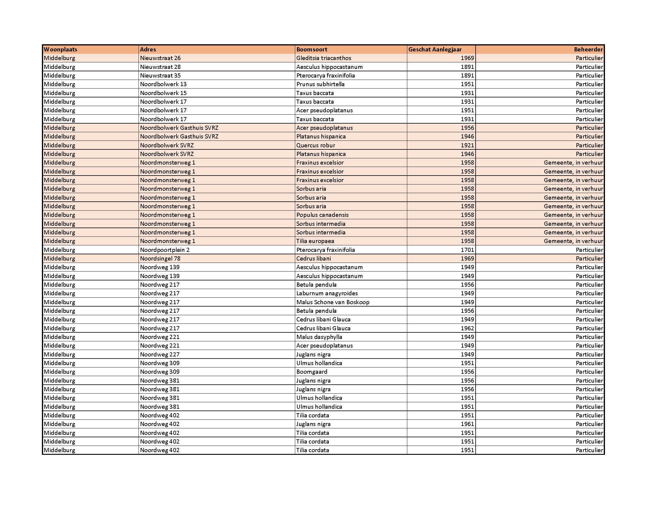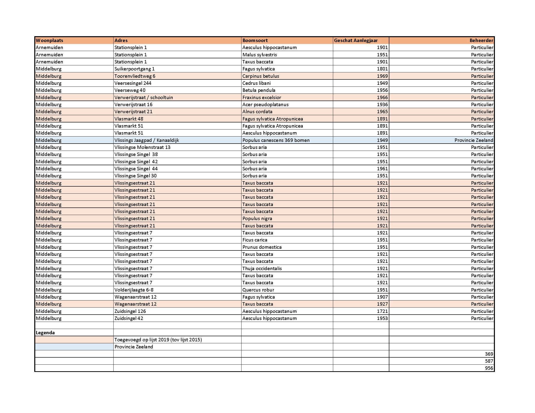 overwegende dat in 2003/2004 het bomenbestand in Middelburg in kaart is gebracht, dat in 2011/2012 een herinventarisatie heeft plaatsgevonden in samenwerking met Stichting Tuin van Zeeland en dat in 2015 en op 17 december 2019 de lijst particuliere monumentale en waardevolle bomen Middelburg is geactualiseerd en vastgesteld;