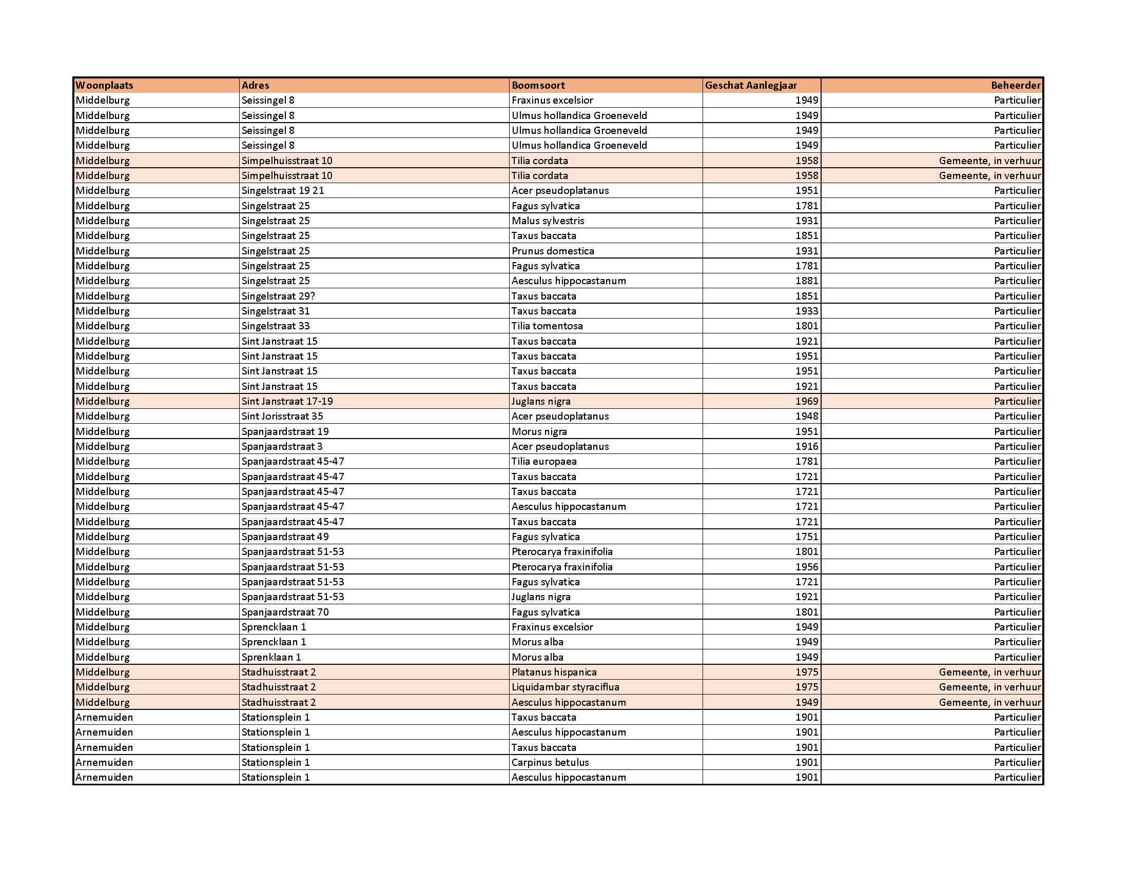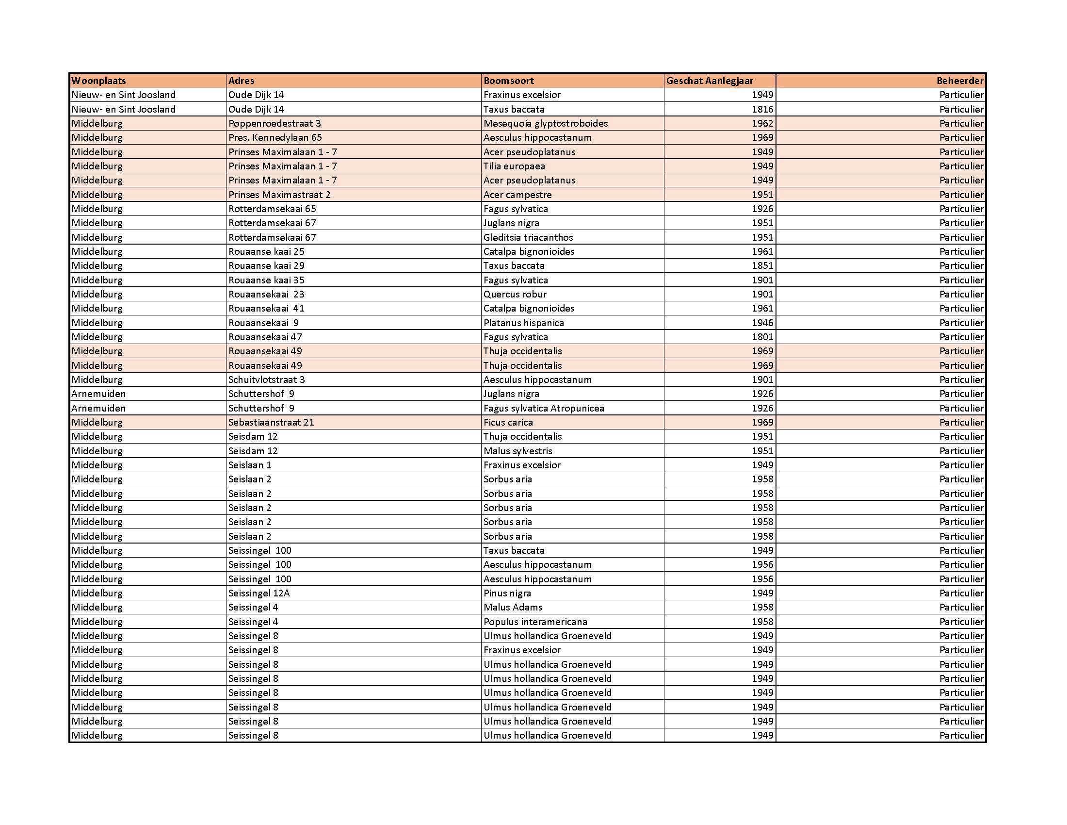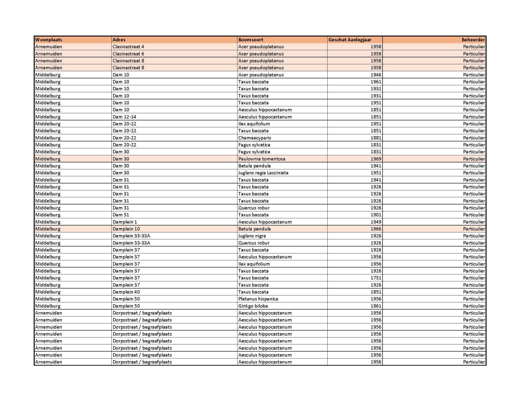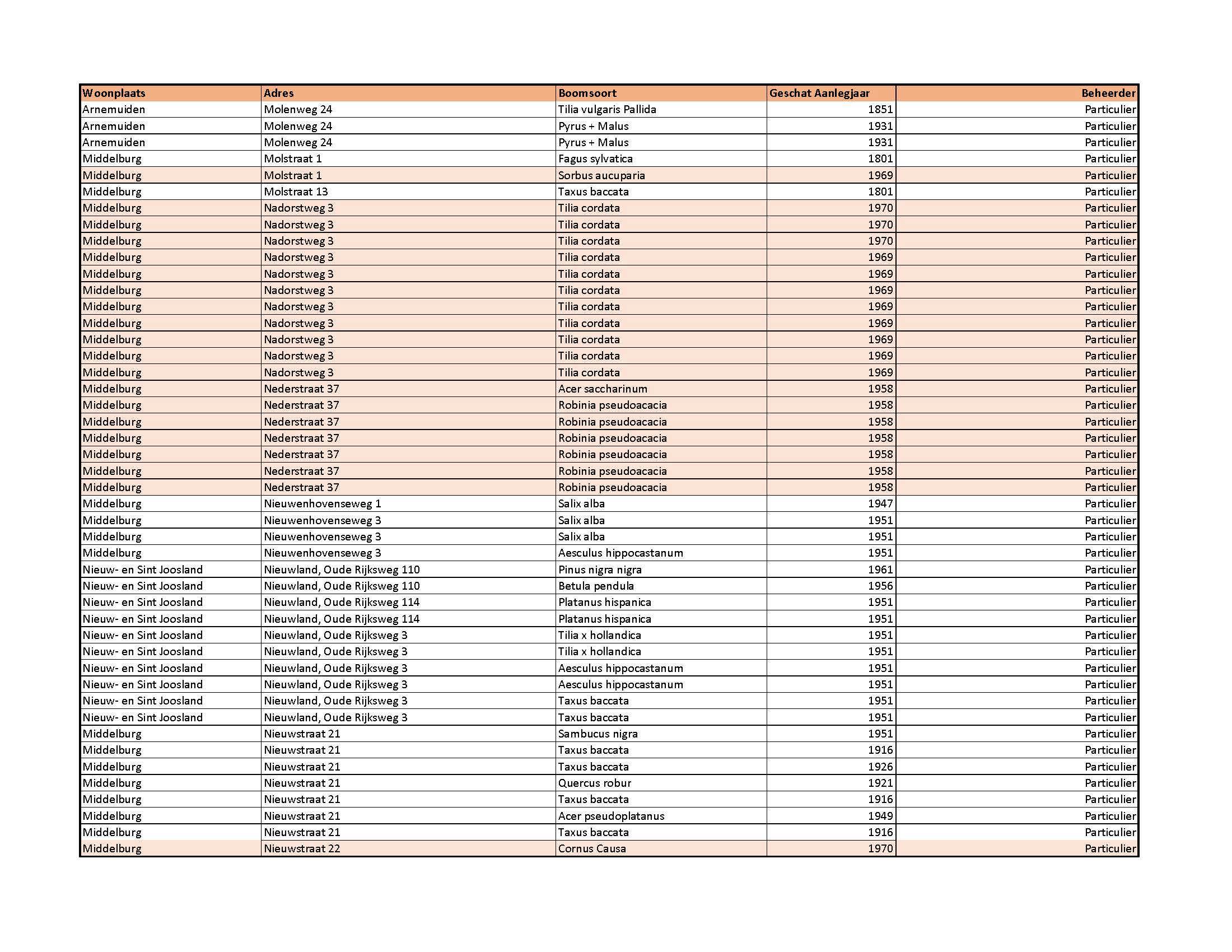 overwegende dat in 2003/2004 het bomenbestand in Middelburg in kaart is gebracht, dat in 2011/2012 een herinventarisatie heeft plaatsgevonden in samenwerking met Stichting Tuin van Zeeland en dat in 2015 en op 17 december 2019 de lijst particuliere monumentale en waardevolle bomen Middelburg is geactualiseerd en vastgesteld;