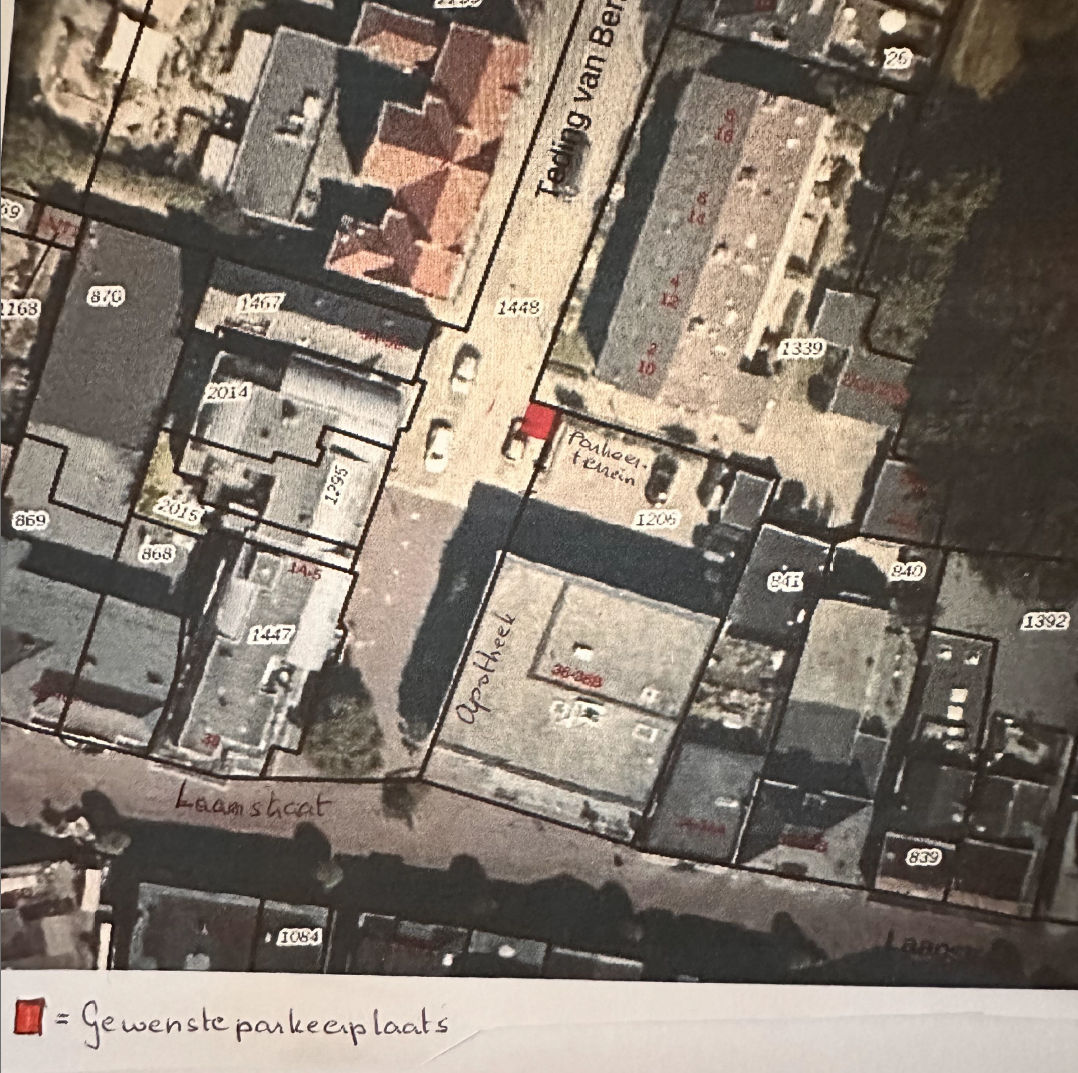 Bij brief van (datum1), kenmerk 1328544, is door een bewoner van de Teding van Berkhoutstraat een verzoek ingediend tot de aanleg van een individuele gehandicaptenparkeerplaats nabij het woonadres.