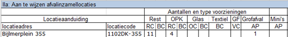 De volgende locaties, zoals aangegeven op de bij dit besluit behorende overzichtstekening, op te heffen als afvalinzamellocatie van huishoudelijk afval;