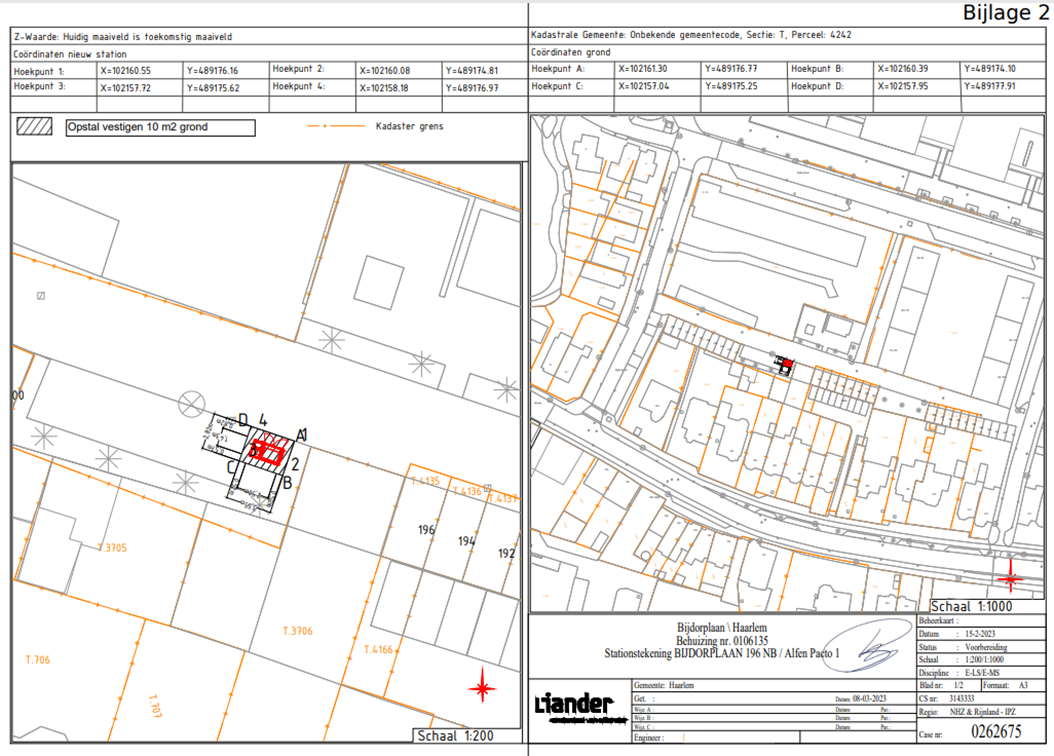 Het recht van opstal ten behoeve van de transformatorstations wordt gevestigd op gedeelten van de percelen grond genummerd A t/m H.
