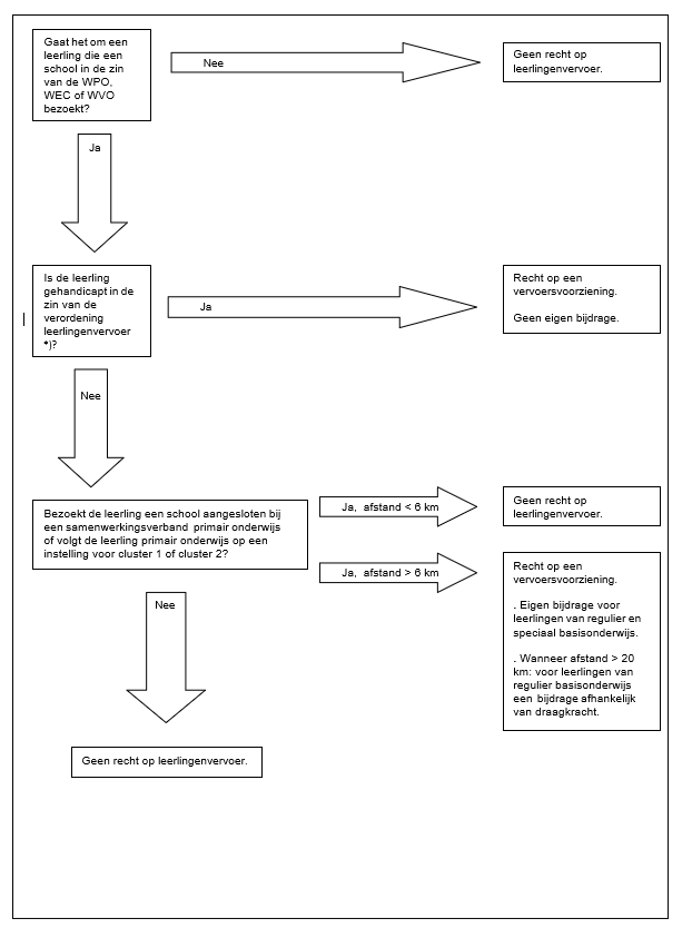 Zie voor voorwaarden toekenning leerlingenvervoer het “Schema voorwaarden toekenning leerlingenvervoer”.