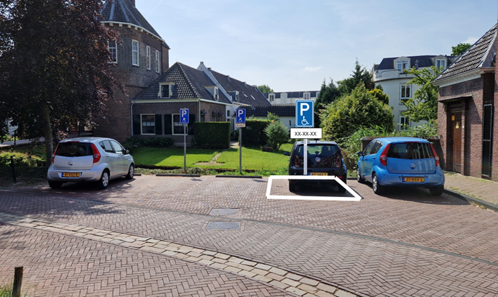 • De maatregel bestaat uit het reserveren van een parkeerplaats in de nabijheid van de woning, dit om de loopafstand zo kort mogelijk te houden. Gezien de parkeerdruk in de omgeving is ervoor gekozen hiervoor een algemene gehandicaptenparkeerplaats om te zetten naar een gehandicaptenparkeerplaats op kenteken.