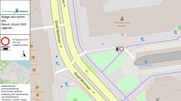 Verkeersbesluit geslotenverklaring met uitzondering van vrachtverkeer Graaf Wichman 1 te Huizen