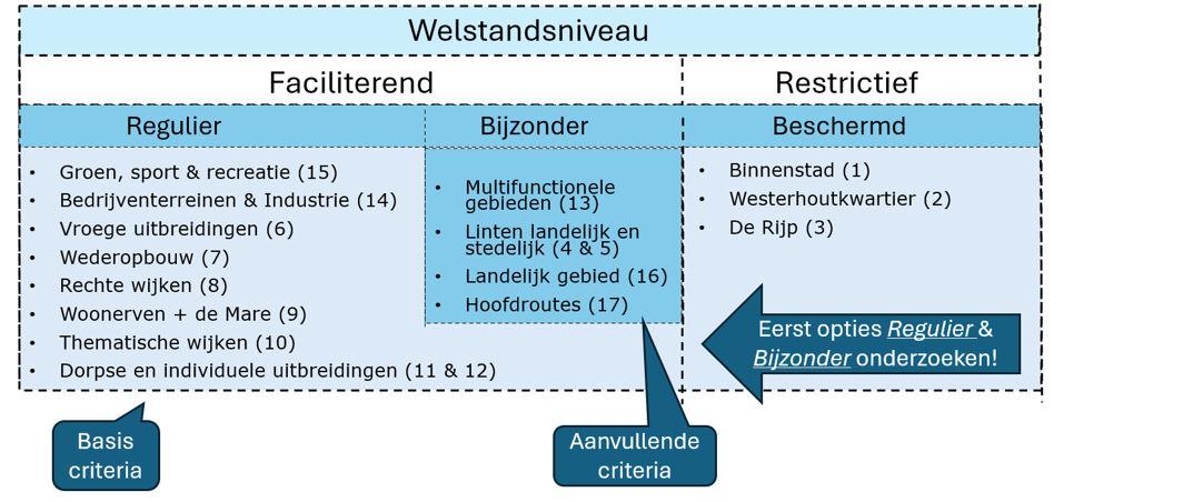 Hierbij wordt ingezet op de welstandgebieden die vallen onder het reguliere en bijzondere welstandniveau. Daarbij wordt onderstaande ladderstructuur aangehouden, waarbij 1 de voorkeur betreft boven 2, en zo verder.