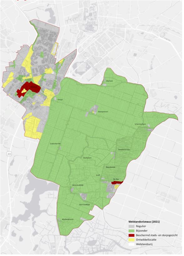 De welstandsgebieden die vallen in het bijzonder welstandsniveau zijn (zie ook kaarten bijlage 2):