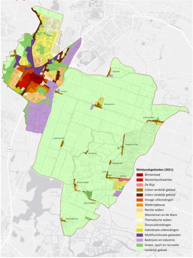 De welstandsgebieden die vallen in het regulier welstandsniveau zijn (zie ook kaarten bijlage 2):