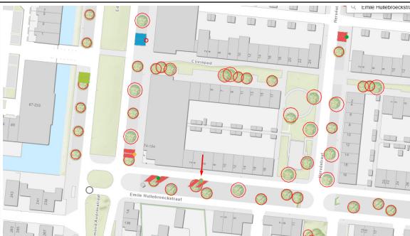 Emile Hullebroeckstraat (op de in het midden van de weg gelegen parkeerstrook ter hoogte van huisnummer 2; wegvak tussen Hervéstraat en Edmund Audranstraat)