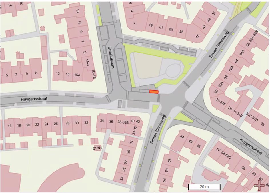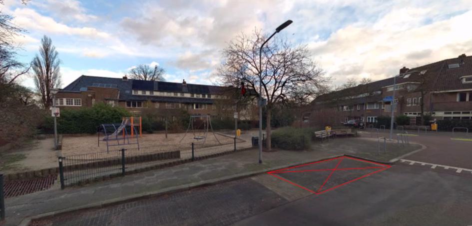 Een gelegenheid in de naast de speeltuin langs de weg Huygensstraat nabij de kruispunt Simon Stevinweg wordt gezien als een geschikte locatie voor het reserveren van een deelauto-parkeerplaats.