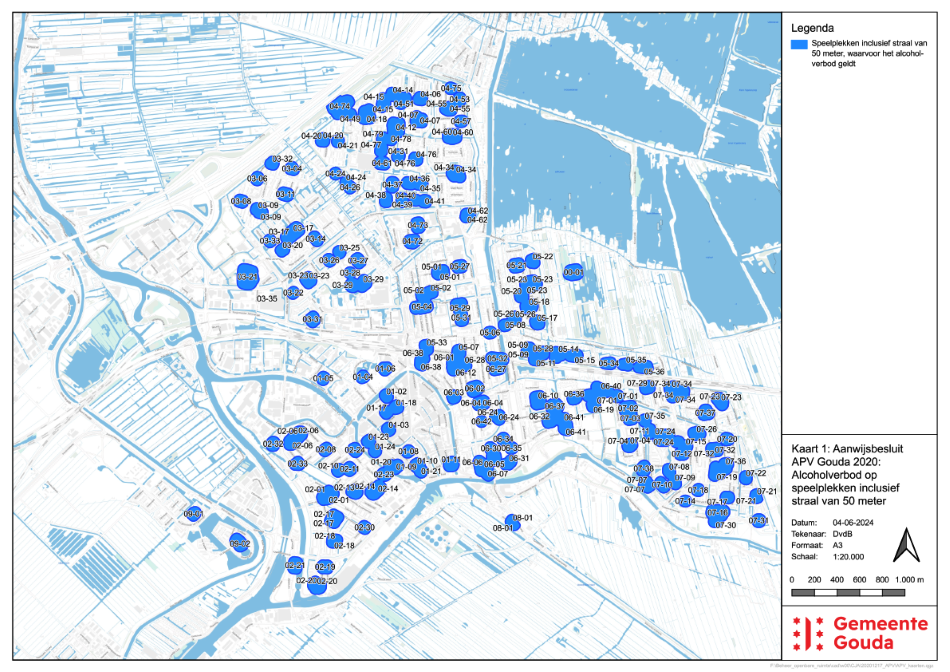 Kaart 1: Alcoholverbod op speelplekken Gouda