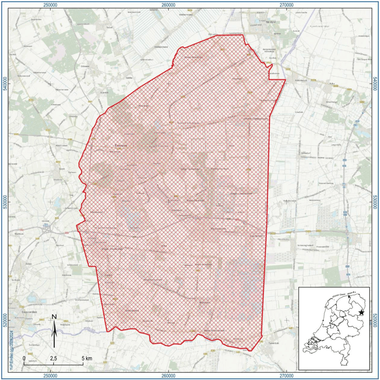 Figuur 1. Onderzoeksgebied gemeente Emmen. Inzet: ligging in Nederland (ster).