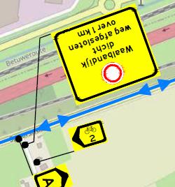 Door het plaatsen van borden C1 (C1 met over xx meters inwerking treedt) C16 en onderborden met mogelijke uitzonderingen op de C1 als bedoeld in de bijlage 1 van het Reglement Verkeersregels en Verkeerstekens 1990 (RVV1990) en afzethekken met een gesloten verklaring voor het verkeer, met uitzondering van werkverkeer: