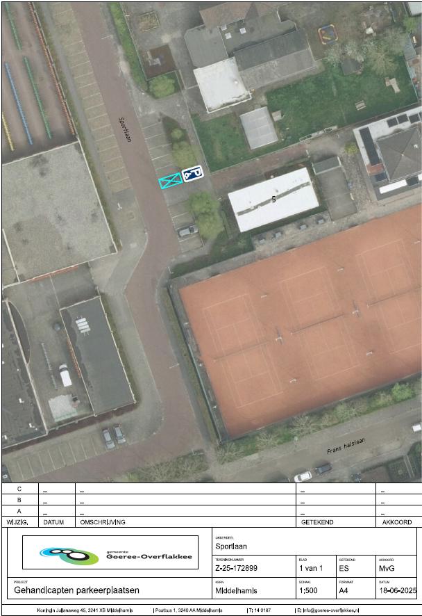 AANWIJZEN ALGEMENE GEHANDICAPTENPARKEERPLAATS SPORTLAAN TE MIDDELHARNIS