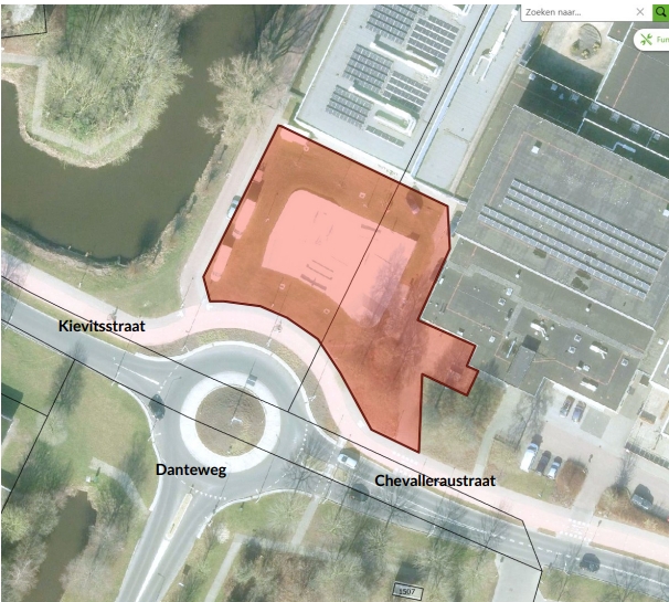 Gebied 1: Skatebaan Chevalleraustraat: Het gebied gelegen voor en naast jongerencentrum “De Punt”, begrensd door de rotonde Chevalleraustraat, Danteweg en de Kievitstraat;