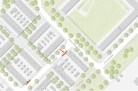 Polluxdreef (ter hoogte van zijgevel Pallas-Athenedreef huisnummer 13; wegvak tussen Midasdreef en Pallas-Athenedreef)