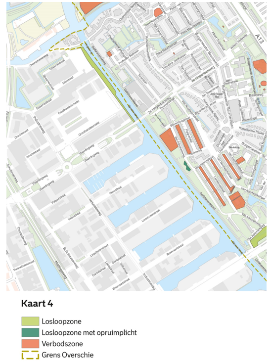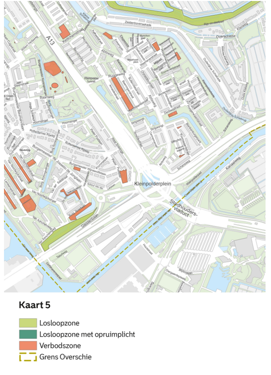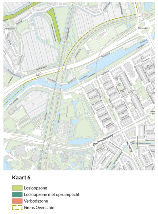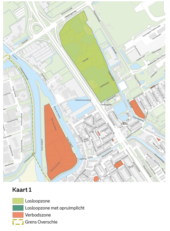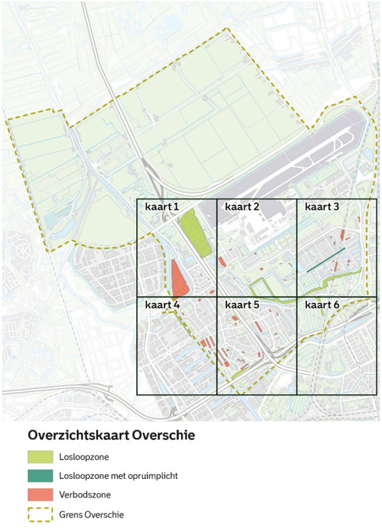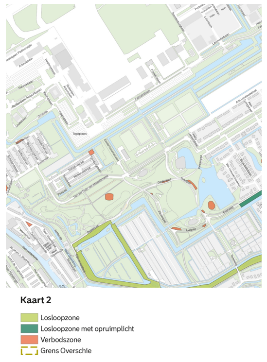 In bijlage 1 vervallen de opschriften ‘Totaalkaart’, ‘Kaart 1: Hondenzones Overschie deelkaart 1’, ‘Kaart 2: Hondenzones Overschie deelkaart 2’, ‘Kaart 3: Hondenzones Overschie deelkaart 3’, ‘Kaart 4: Hondenzones Overschie deelkaart 4’ en de daarbij behorende kaarten.