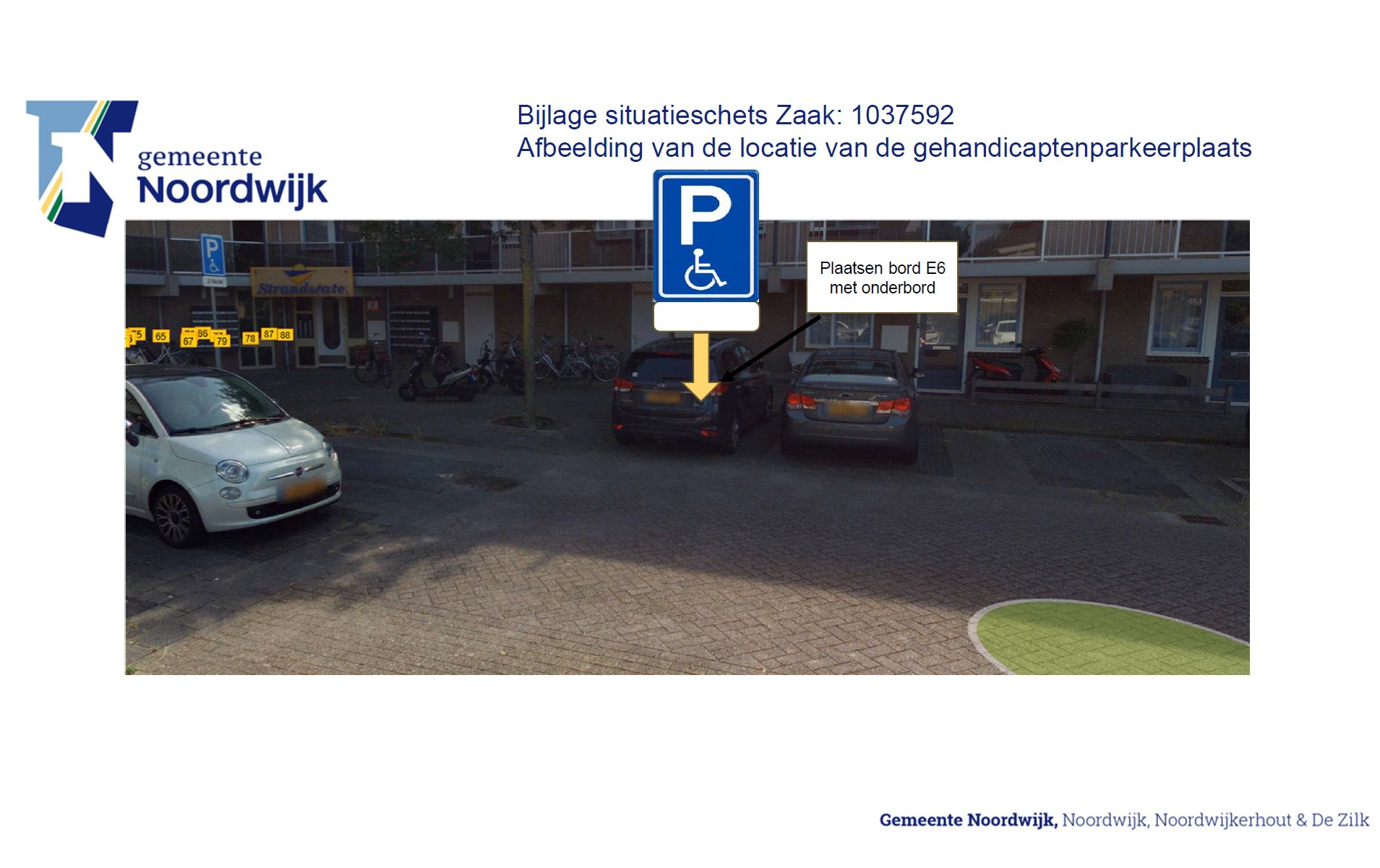 Instellen gehandicaptenparkeerplaats op kenteken op de Zandbank nabij de ingang van Strandstate flat in Noordwijk