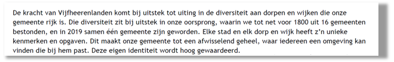 In het Coalitieakkoord op hoofdlijnen 2022-2026 (Samen zijn wij Vijfheerenlanden) is een vergelijkbaar uitgangspunt opgenomen. Er is het volgende opgenomen: