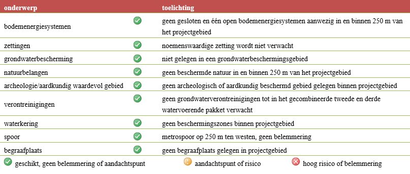In Tabel 3.3 zijn de relevante belangen opgenomen die van invloed kunnen zijn op de werking van een open bodemenergiesysteem in Buikslotermeerplein. Het gaat om zowel technische als juridische aspecten.