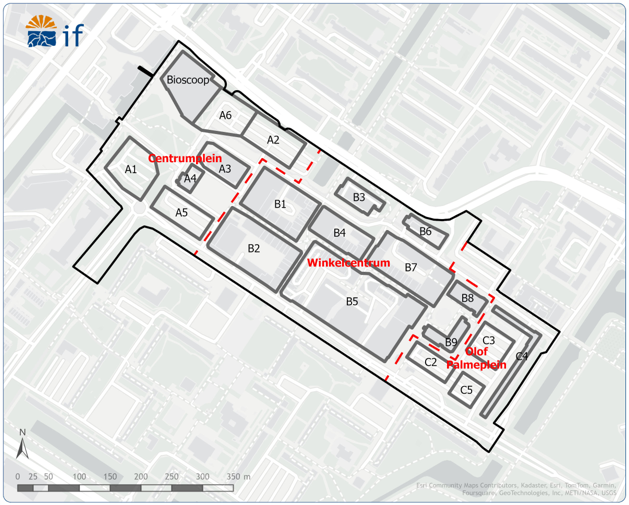 Figuur 4.1 | Deelgebieden en ontwikkelingen binnen de Buikslotermeerplein in Amsterdam
