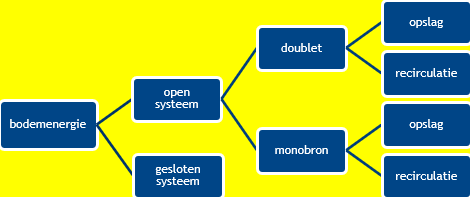 Bodemenergiesystemen maken gebruik van de bodem om warmte en/of koude op te slaan in het aanwezig grondwater. Deze warmte en/of koude wordt gebruikt voor de klimatisering van gebouwen of processen. Hiermee worden aanzienlijke energiebesparingen ten opzichte van conventionele verwarmings- en koelinstallaties gerealiseerd. Figuur 3.1 presenteert de verschillende typen bodemenergiesystemen.