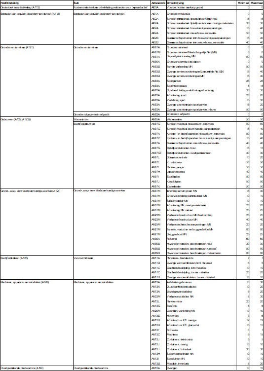 Afschrijvingstermijnen gemeente Eindhoven per activasoort