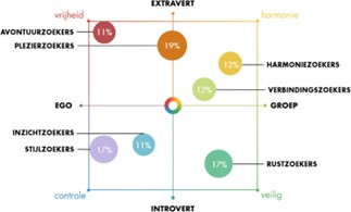 Uit het ‘Vitaliteitsonderzoek Verblijfsrecreatie Achterhoek’, dat in 2019 is uitgevoerd, komt naar voren dat het aanbod van verblijfsaccommodaties in Berkelland met name aantrekkelijk is voor de toeristisch-recreatieve doelgroepen harmonie-, rust- en verbindingszoekers. Deze Leisure-leefstijlen zijn weergegeven in de figuur hiernaast. Voor zogenoemde avontuurzoekers liggen er nog kansen in Berkelland, evenals voor plezier-, stijl- en inzichtzoekers.