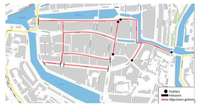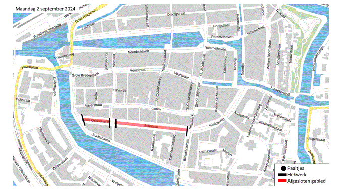 het Franekereind Zuidzijde, Grote Ossenmarkt, Heiligeweg, Kleine Bredeplaats, Noorderhaven zuidzijde, Noordijs westzijde, Rommelhaven Zuidzijde, Schritsen, Simon Stijlstraat, St. Jacobstraat, Vismarkt en Voorstraat op vrijdag 29 augustus 2025 vrij te houden van motorvoertuigen door het plaatsen van borden ”niet parkeren i.v.m. evenement” en af te sluiten voor al het verkeer door het plaatsen van bord C1 van de bijlage I van het Reglement Verkeersregels en Verkeerstekens 1990 (zie ook figuur 2);