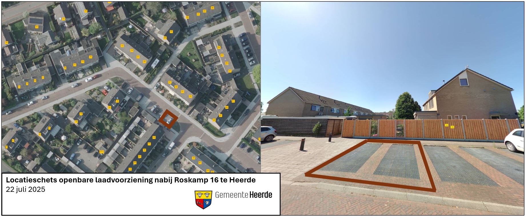 Locatieschets plaatsing openbare laadvoorziening nabij Roskamp 16 te Heerde: