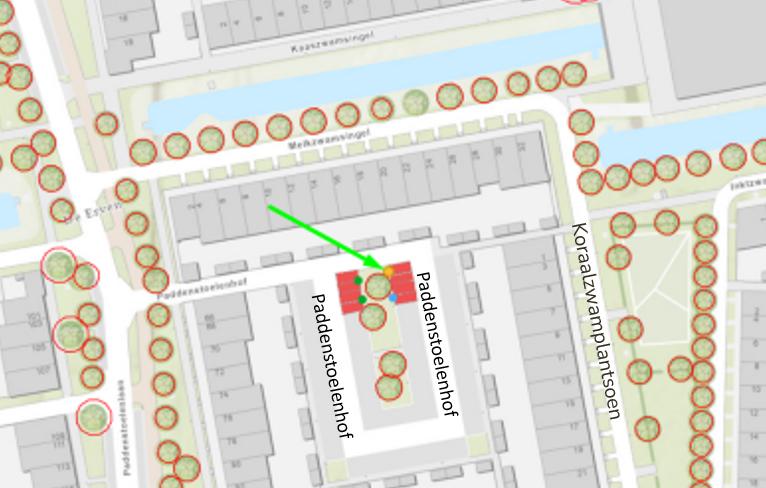 Paddenstoelenhof (tegenover de achterzijde van perceel Koraalzwamplantsoen 1; wegvak bereikbaar vanaf de Paddenstoelenlaan 66)