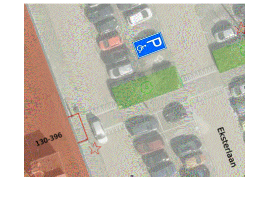 • door plaatsing van bord E6 van bijlage I van het Reglement Verkeersregels en Verkeerstekens 1990 een gereserveerde gehandicaptenparkeerplaats aan te wijzen aan de voorzijde van het appartementencomplex aan de Eksterlaan met nrs.130-396;